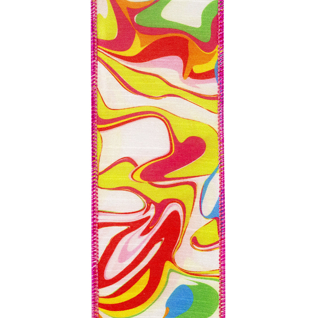 Abstract Bright Ink Mix Pattern Wired Ribbon, 2-1/2-inch, 10-yard