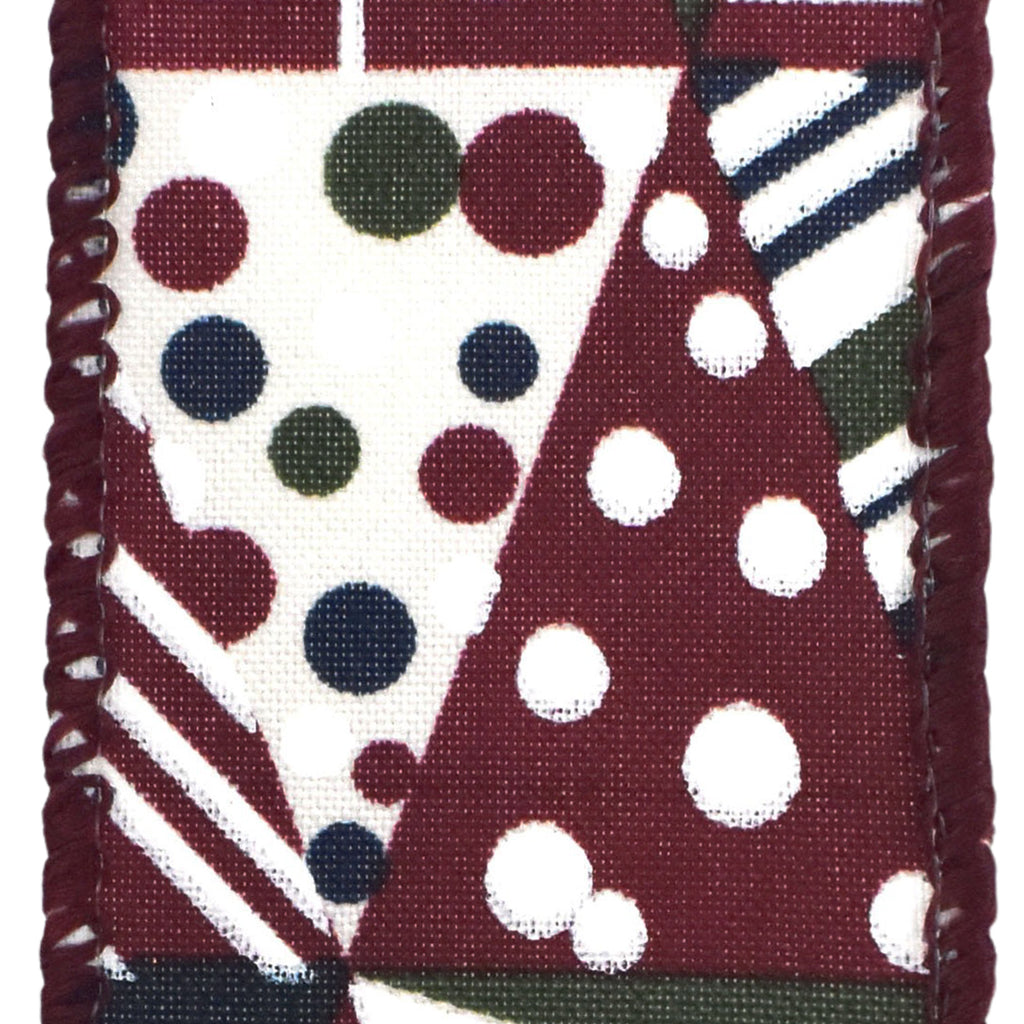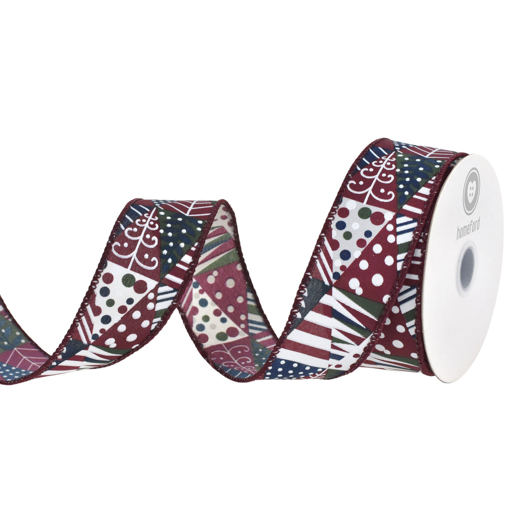 Abstract Christmas Tree Collage Wired Ribbon, 1-1/2-inch, 10-yard