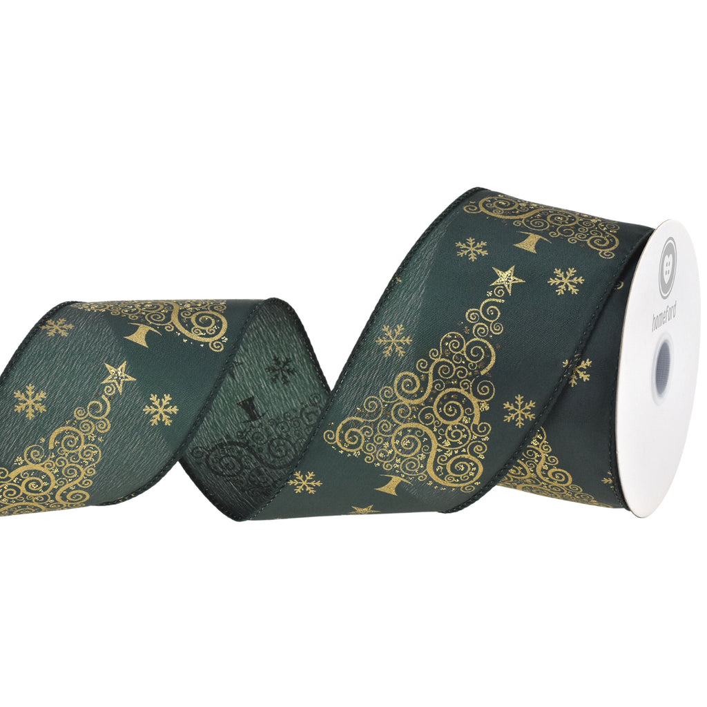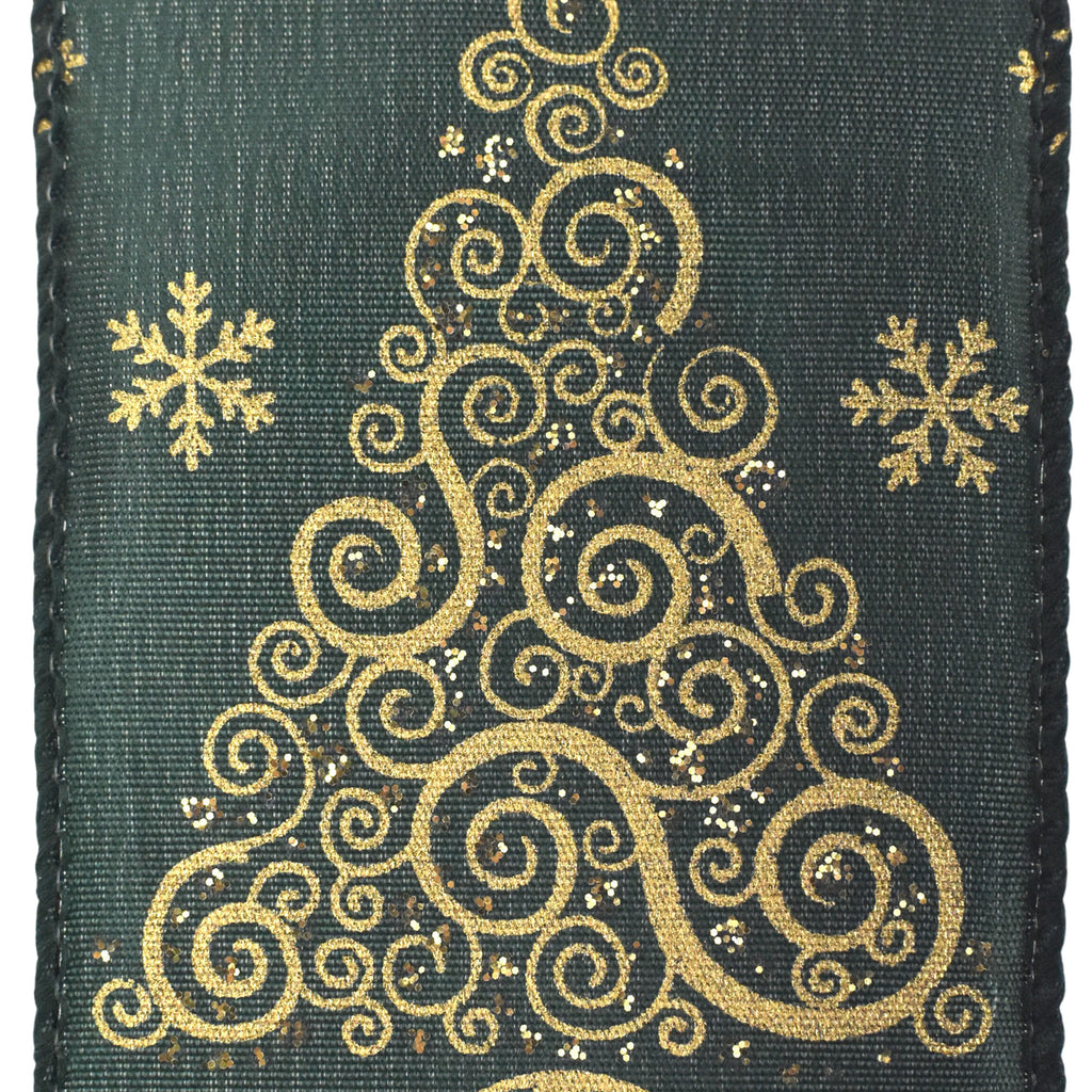 Abstract Gold Christmas Tree Satin Wired Ribbon, 2-1/2-inch, 10-yard