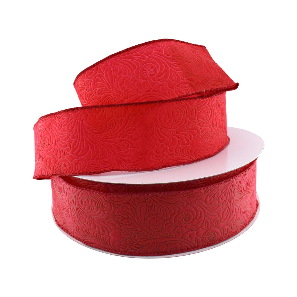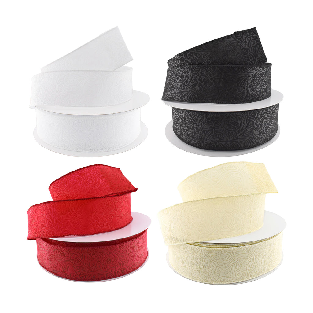 Embossed Flowers Hot Cut Edge Floral Wrap Ribbon, 2-1/2-inch, 50-yard