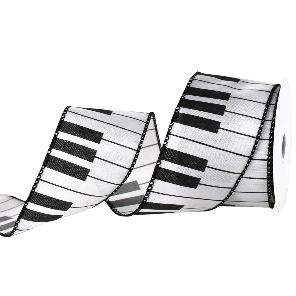 Piano Keys Musical Wired Ribbon, 2-1/2-inch, 10-yard