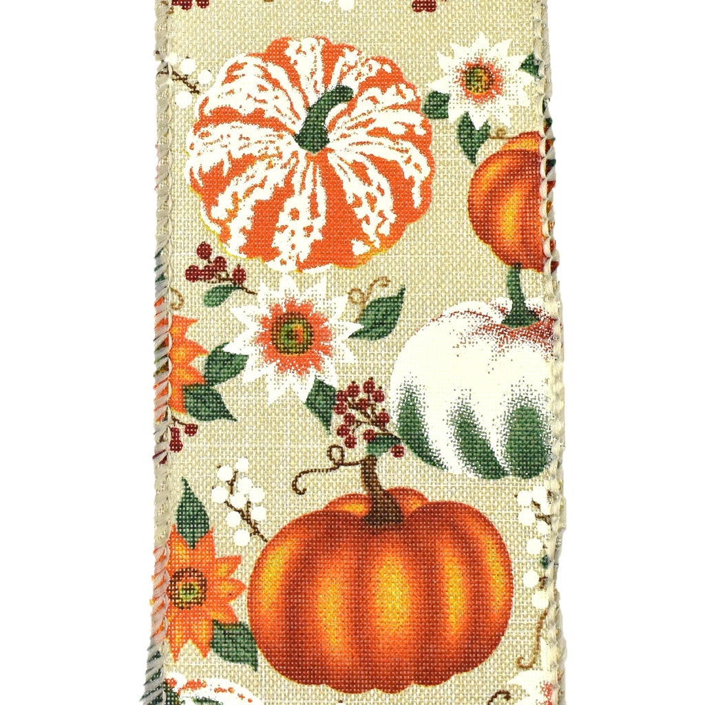 Pumpkins and Fall Harvest Flowers Wired Ribbon, 2-1/2-Inch, 10-Yard