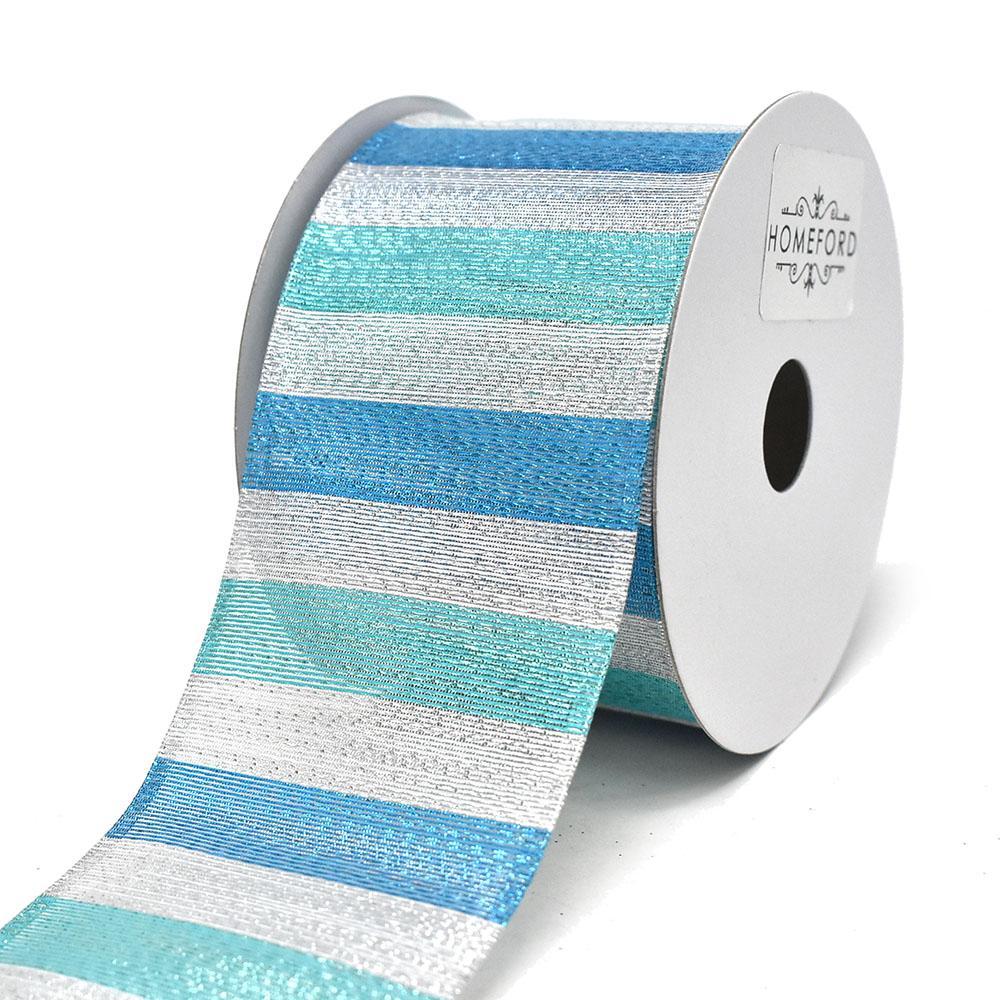 Shiny Metallic Stripes Wired Ribbon, 2-1/2-Inch, 10-Yard