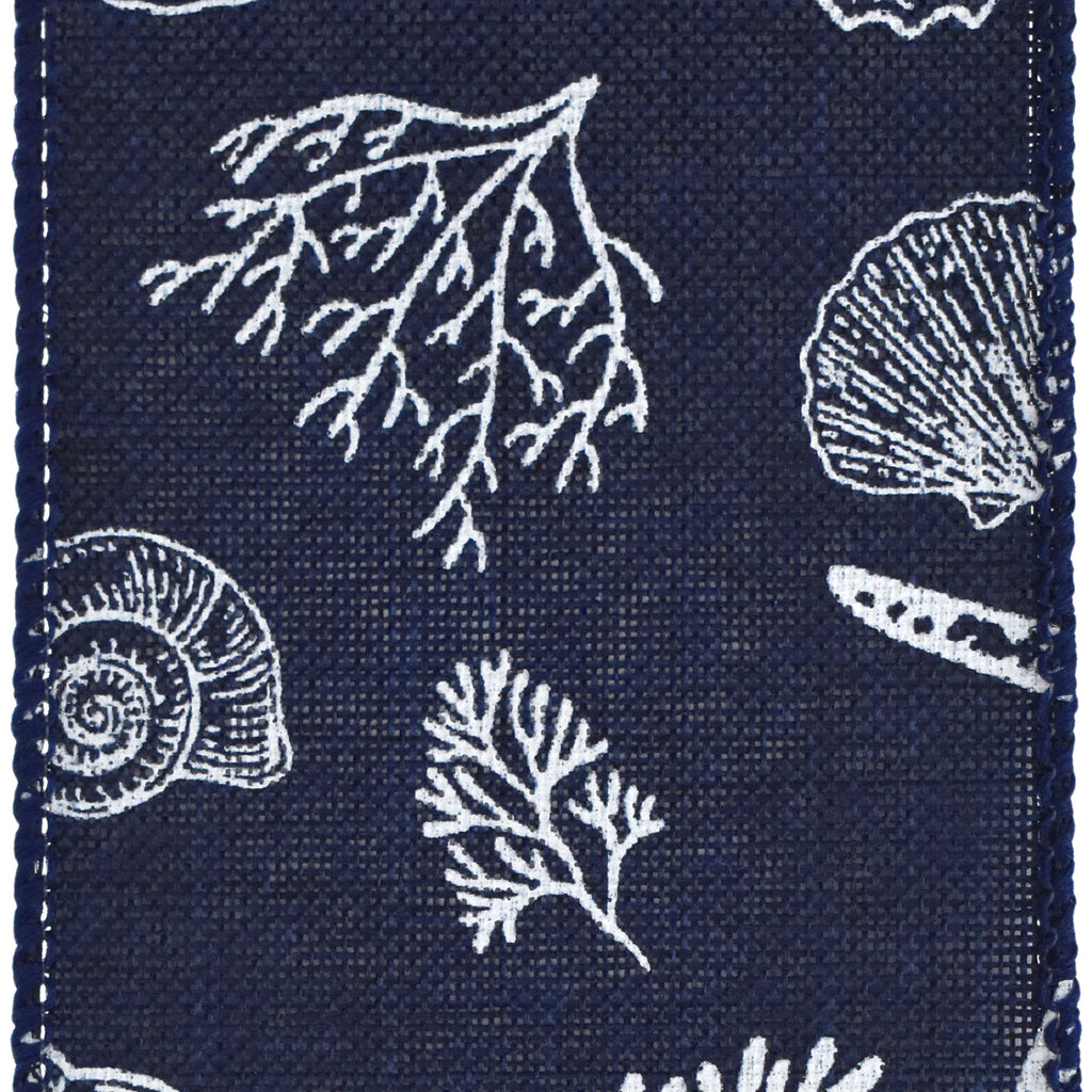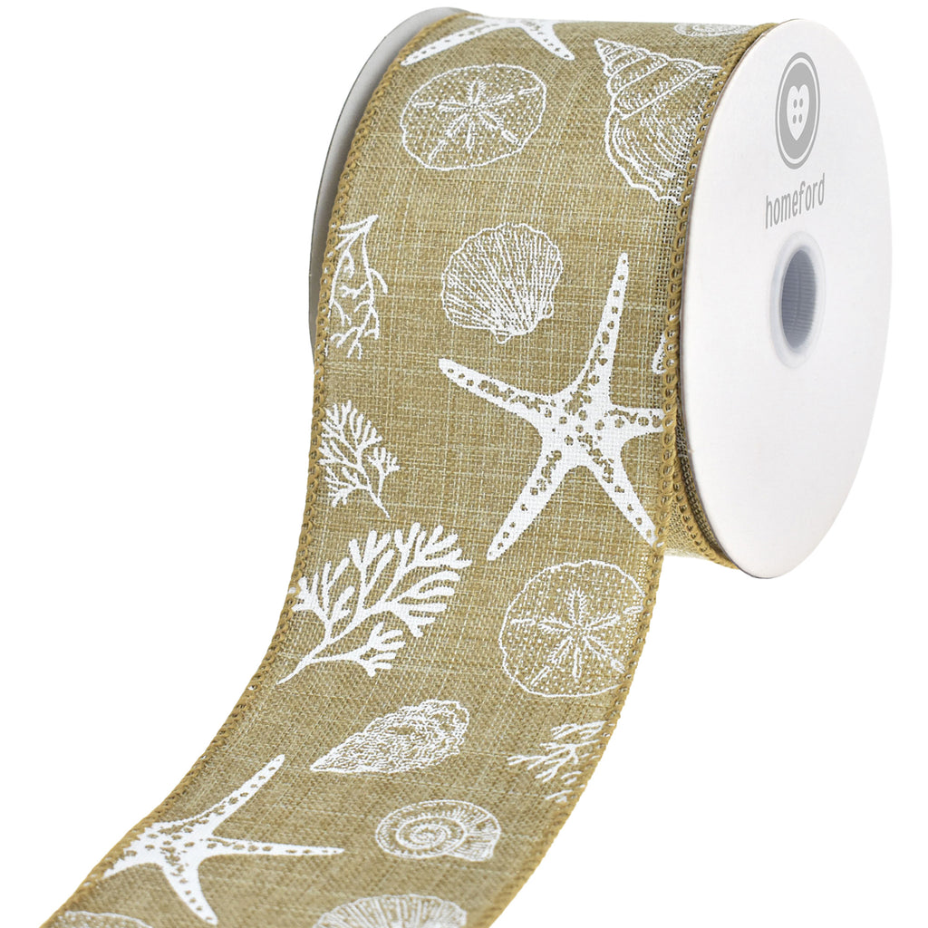Summer Stamped Beach Icons Faux Linen Wired Ribbon, 2-1/2-inch, 10-yard
