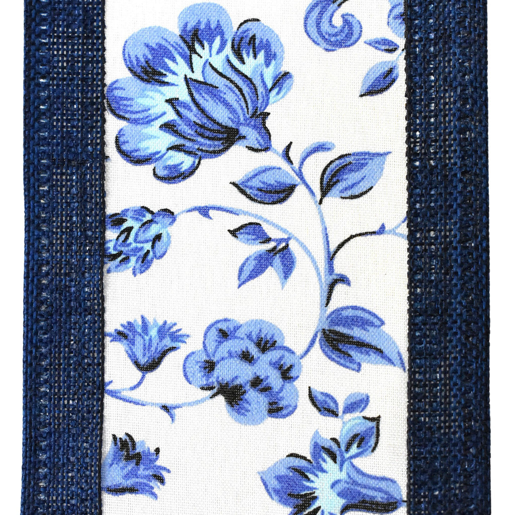 Toile Pattern Faux Linen Edge Wired Ribbon, 2-1/2-inch, 10-yard