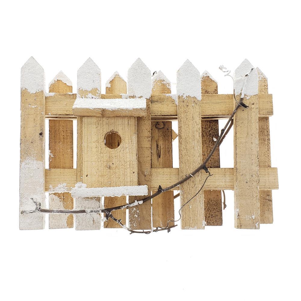 Christmas Snowed Wood Picket Fence Decoration, Natural, 20-Inch x 8-Inch