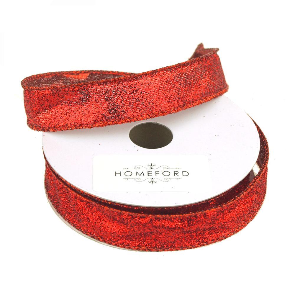 Amazing ribbon that will be perfect to decorate this holiday season. This ribbon is wired and can be molded how one chooses so it makes the possibilities endless this season. With a metallic look and glitter, this ribbon will make your Christmas sparkle. Decorate your Christmas decorations with this shiny ribbon! Length: 10 Yards x Height: 7/8"