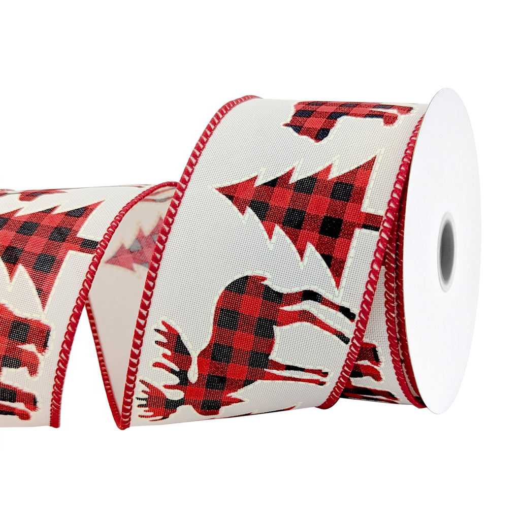 Holiday Cut Outs in Buffalo Plaid Wired Christmas Ribbon, 2-1/2-Inch, 10-Yard
