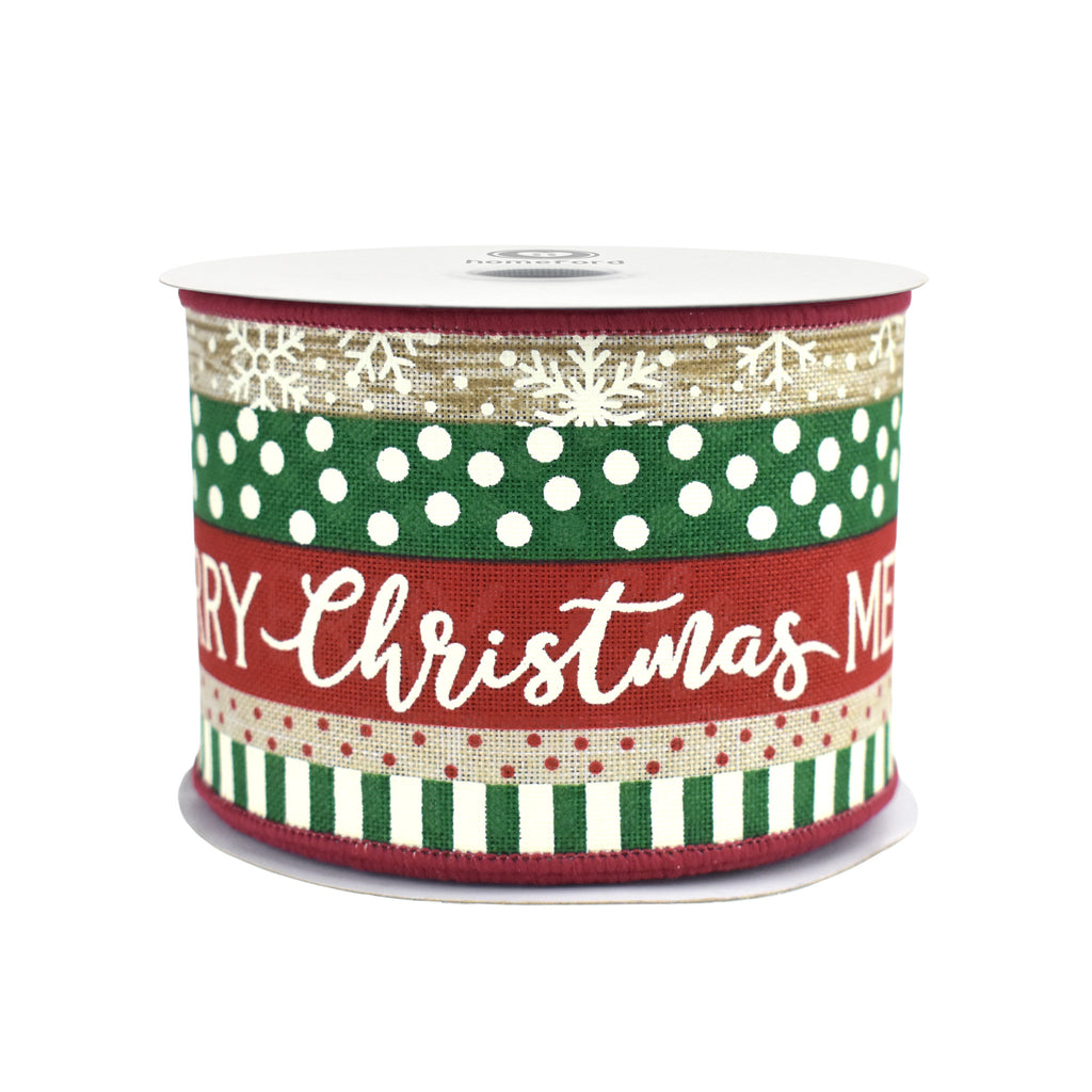 Merry Christmas Mixed Stripes Wired Ribbon, 10-yard