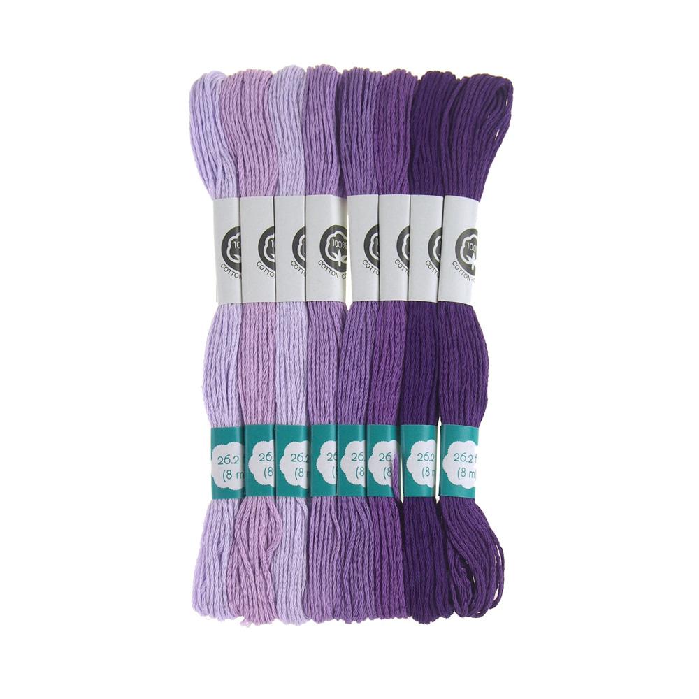 An assortment of 8 strands divisible floss made from 100% Cotton. Each skein is 8.7 yards (26.2 feet), 100% colorfast and fade resistant.