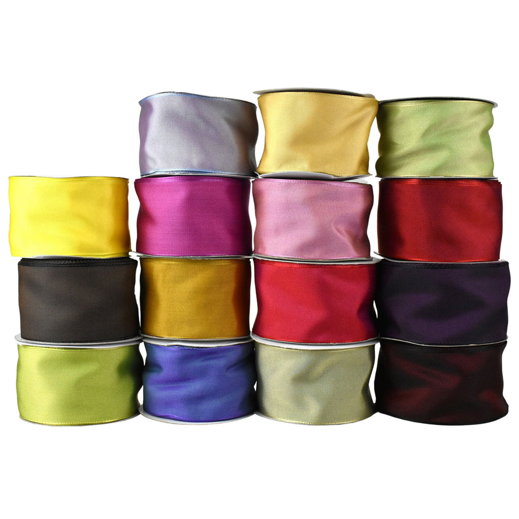 Crafted from high-quality grosgrain ribbon, this ribbon features two-toned coloring that is sure to add a pop of color and sophistication to any project. The wired edges make it easy to create beautiful bows that hold their shape, while the sturdy construction ensures that the ribbon will remain in great condition even after multiple uses. Use it to add a touch of style to your floral arrangements, home decor, or even your wedding decorations! Length: 25 yd Width: 2.5"