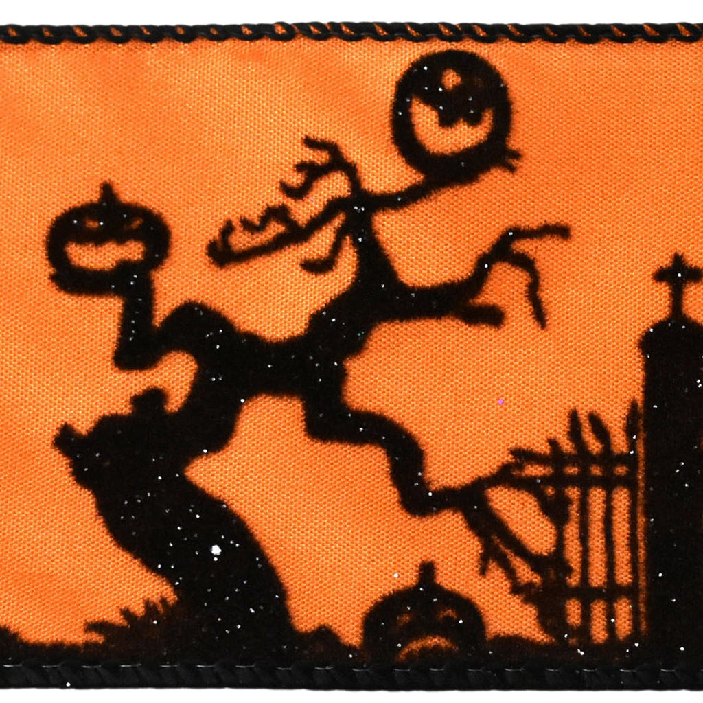 Flocked Halloween Scene Satin Wired Ribbon, 2-1/2-inch, 10-yard
