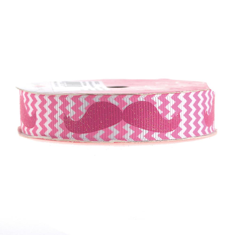 Glitter Mustache Chevron Grosgrain Ribbon, 7/8-inch, 3-yard