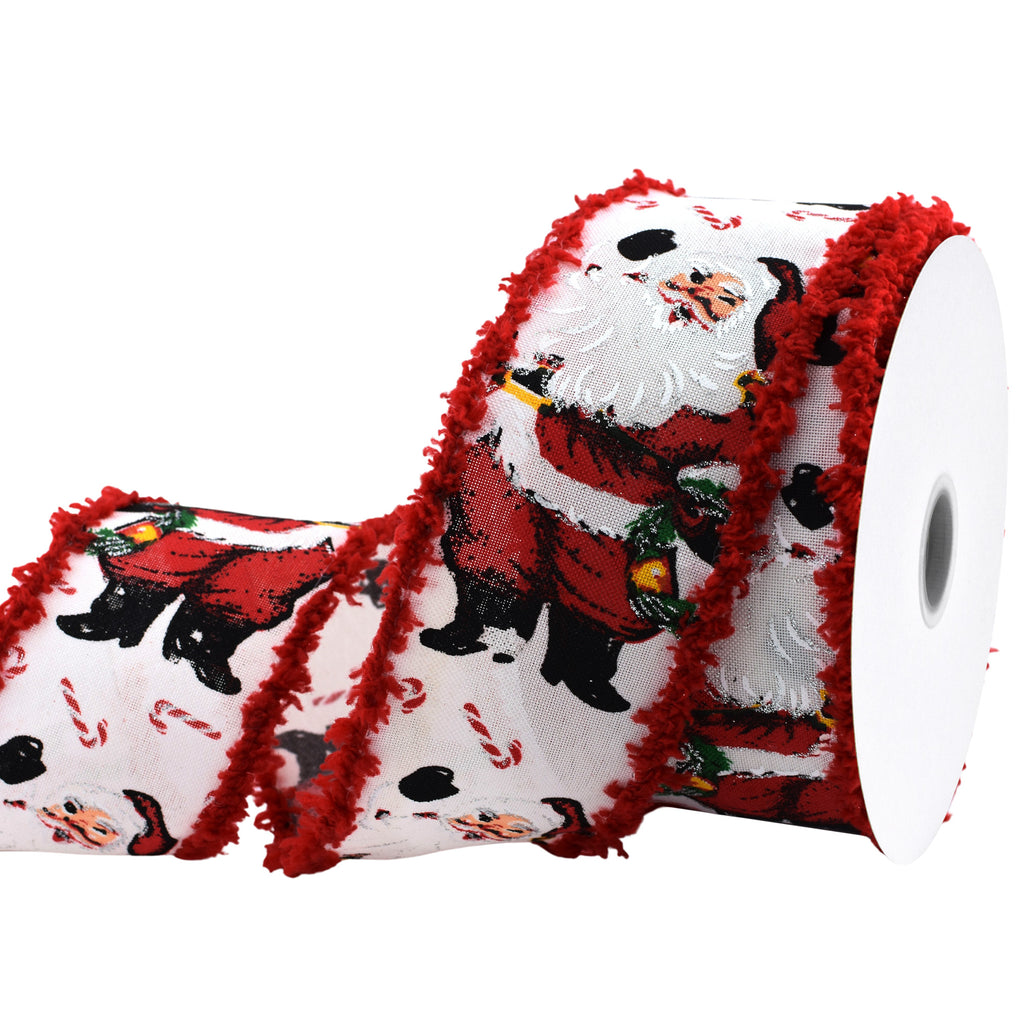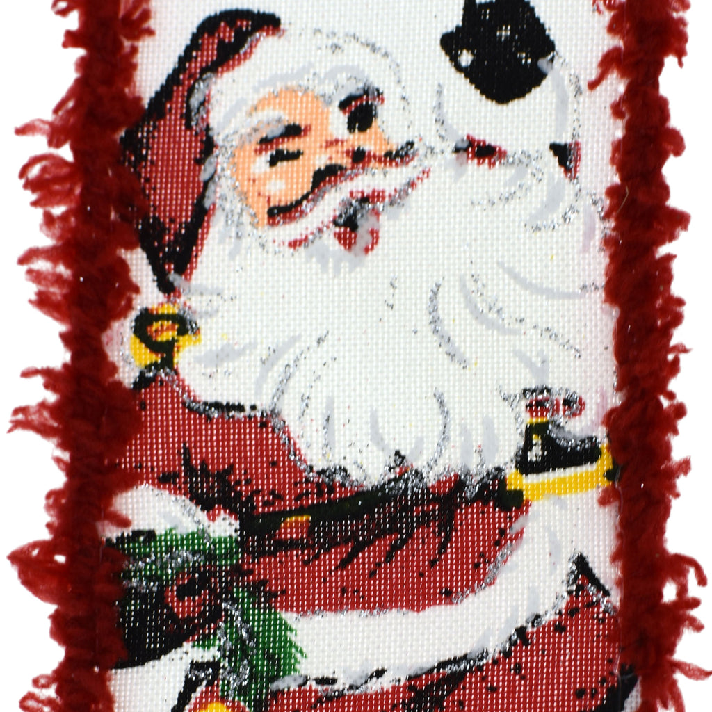 Christmas Smiling Santas Frizette Edge Wired Ribbon, 2-1/2-inch, 10-yard
