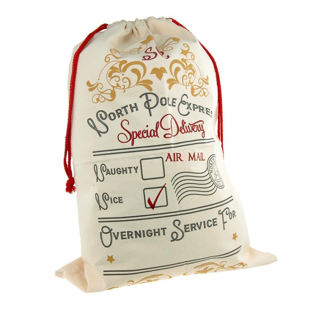 Large Cotton Christmas Santa Gift Sacks, 27-inch x 19-inch