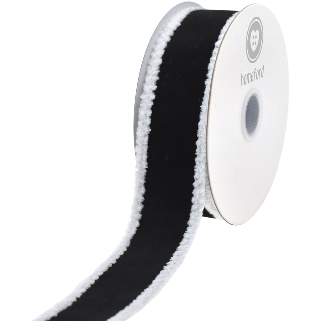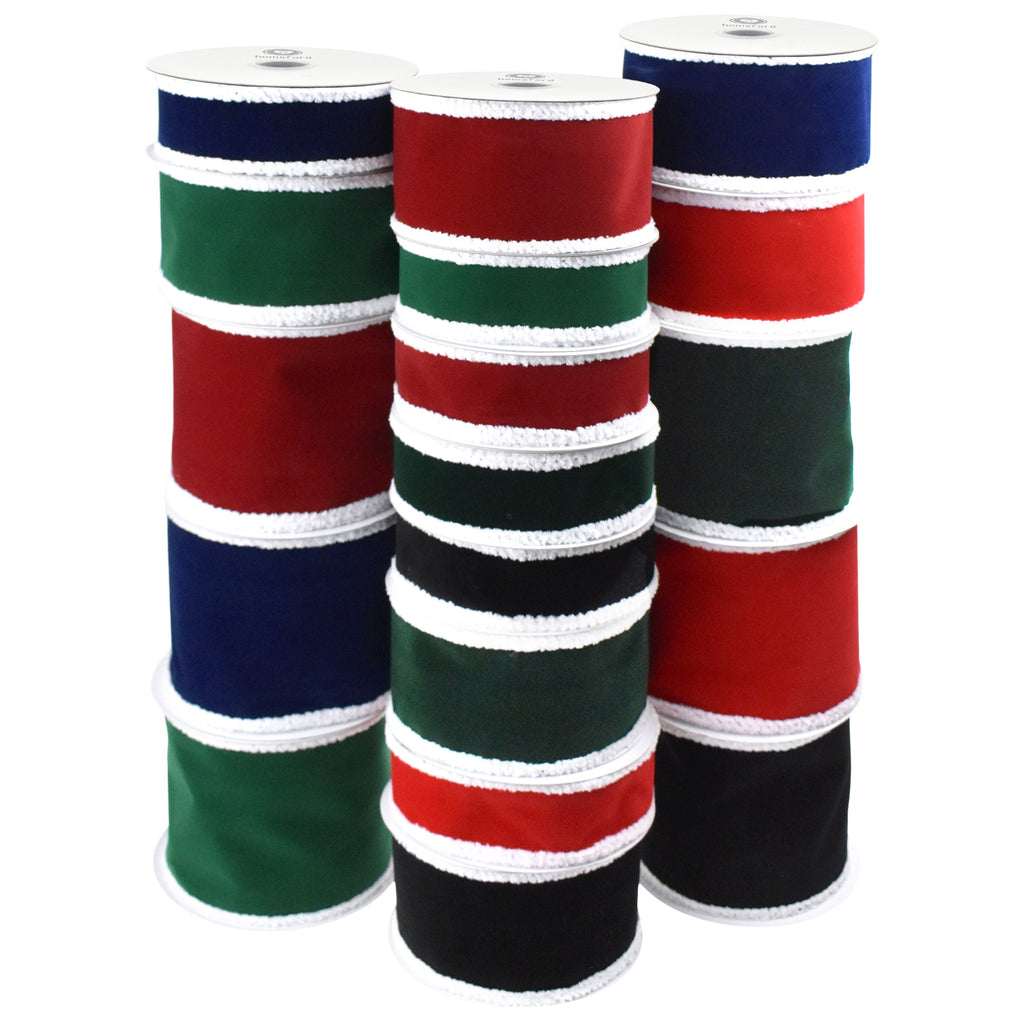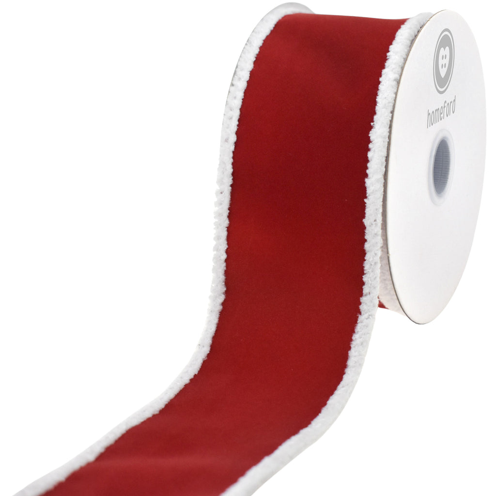 Christmas Velvet Fuzzy Edge Wired Ribbon, 10-yard