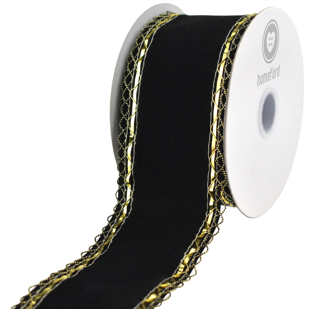 Christmas Velvet Victorian Edge Wired Ribbon, 10-yard