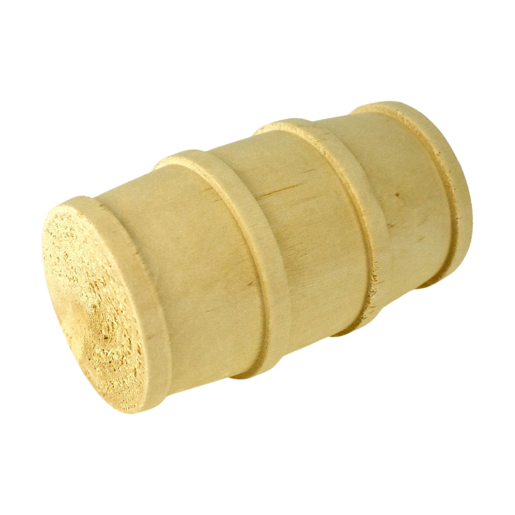 Decorate your desk or crafting space with this mini wooden barrel! This adorable wooden barrel is perfect for storing your paintbrushes, pencils, and other small craft supplies! They come in a natural finish and are ready for your to personalize with your favorite paints! Length: 3.5" Width: 2"